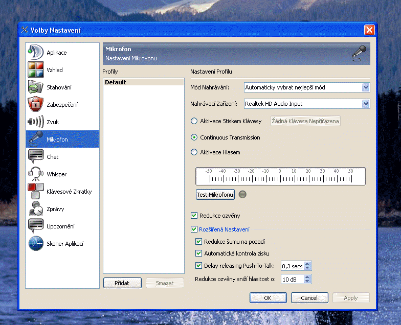 Takhle mám TS3 (pro test mikrofonu jen klikneš na test mikrofonu)
