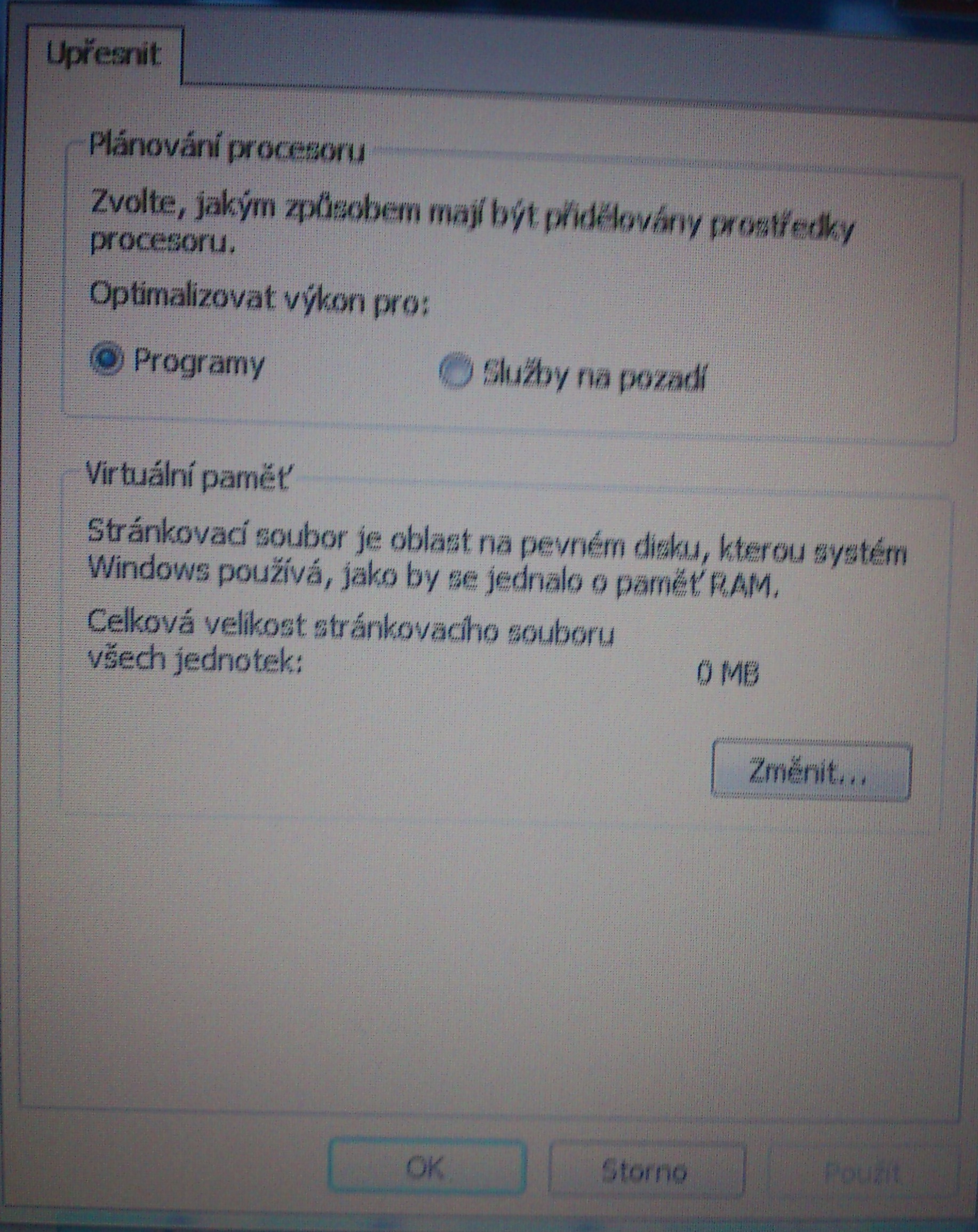 Klikni na to změnit a nastav stránkovací soubor na 1,5 velikosti RAM, zda to půjde.