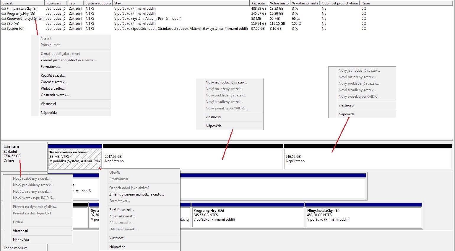 Čau, mám menší problém s novým diskem. Koupil jsem 3Tb a jak můžete vidět na obrázku(Disk 0), disk je nějak divně dafaultně rozdělen na 2Tb (které mohu použít a normálně jim přidělit písmeno atd.) a 750 nepřiřazených Giga. Jde mi o to, že chci přidělit i těch 750Gb, protože sem si nekoupil jen 2Tb že... Boužel jediné možnosti u toho jsou: vlastnosti a nápověda. A ty 2Tb už dál rozšířit nejdou.