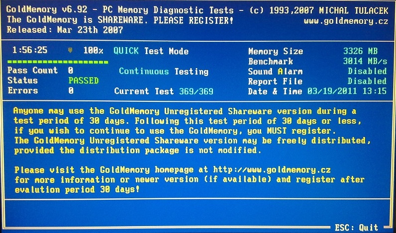 Plus z první strany : Už to testuje 4h ramky a zatim žádná chyba. Divný je že je tam už 668% já myslel že to končí ve 100% :D čili RAM je OK (testováno memtest)