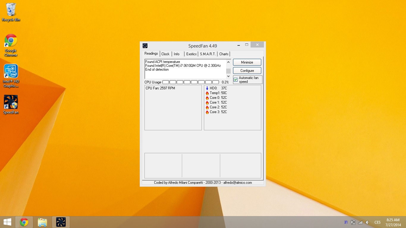 Při zatížení procesoru nad 25-30 % se okamžitě vypne a teploty se drží okolo 65 ( v nečinosti 50-55 ) nevyznám se v tom ale není to tak strašně