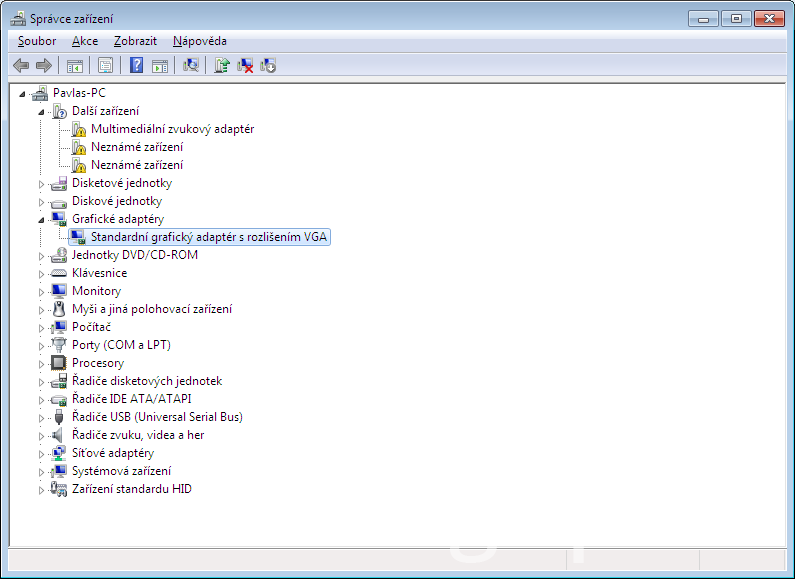 Z Tebe to leze jak z chlupaté deky. Začínám tušit, že máš notebook, podle profilu nějaký Acer. Zjisti přesný typ toho ntb a napiš ho sem, pošlu Ti víceméně obratem odkaz na ovladač grafiky. Jo, a ty W7 jsou 32 nebo 64bit?