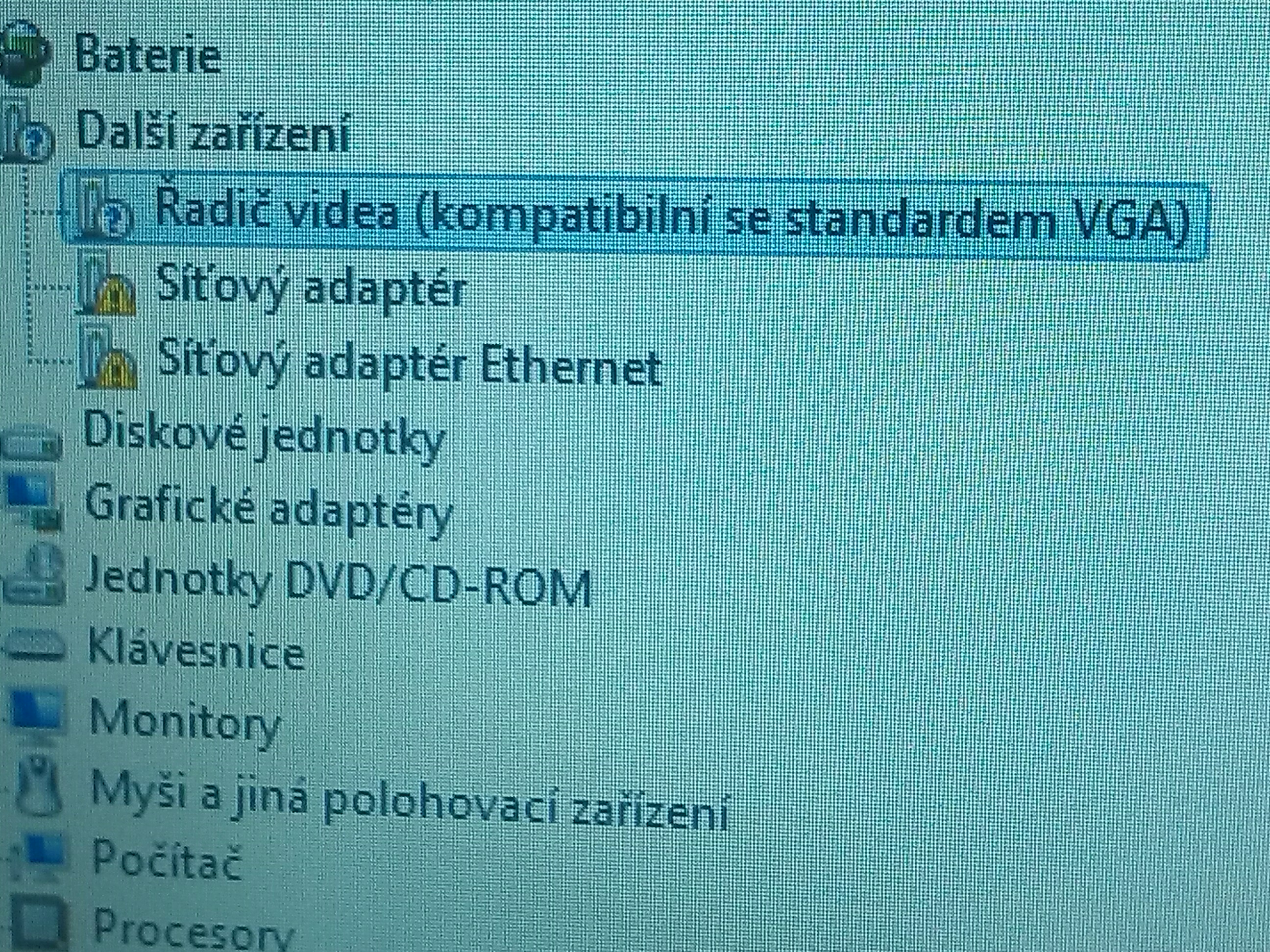 Vykřičník u adaptéru pro síť i pro Ethernet.