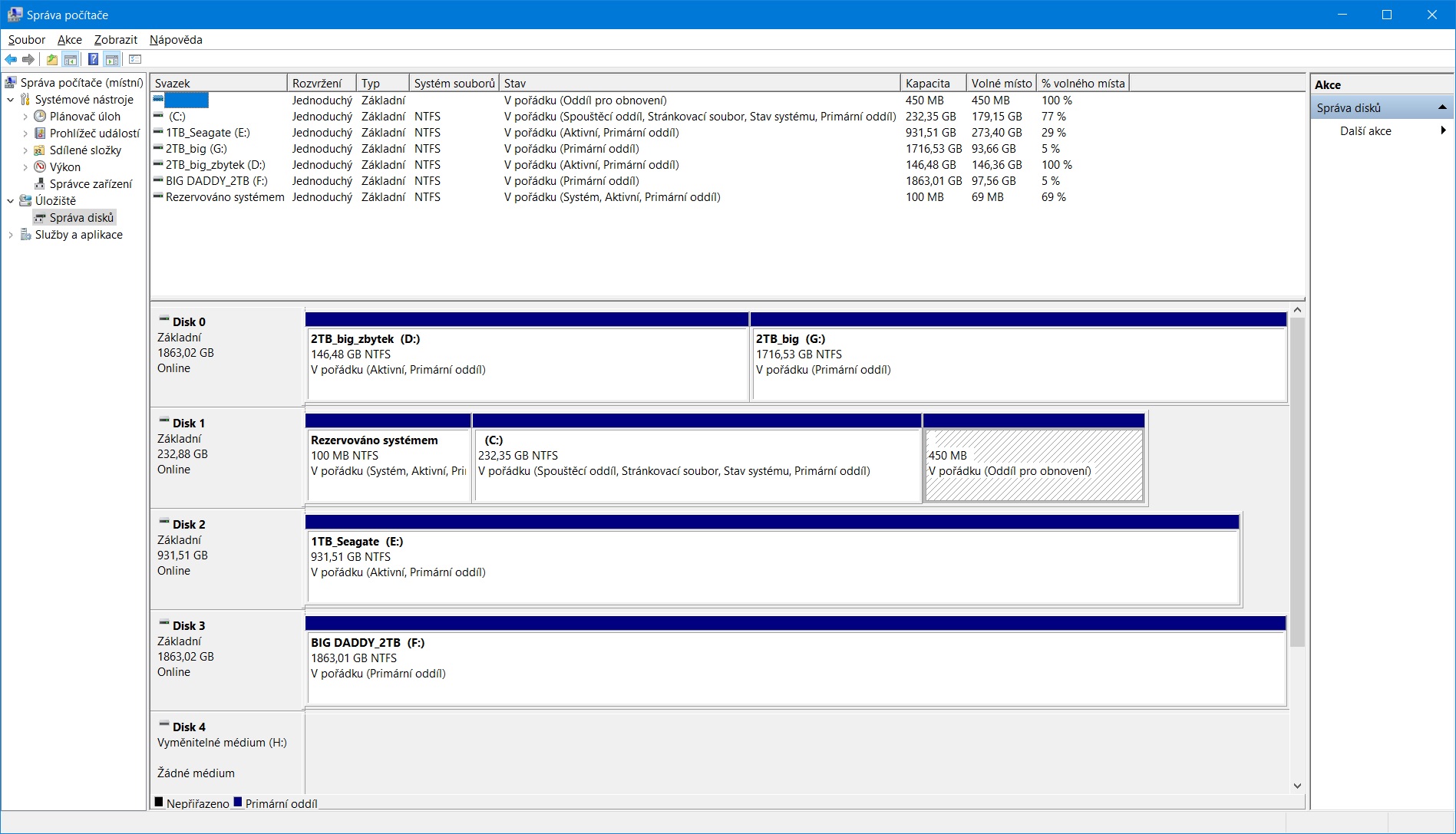 4) Přikládám obrázek správu disků – Disk 1 je to systémové SSD alias "C:"