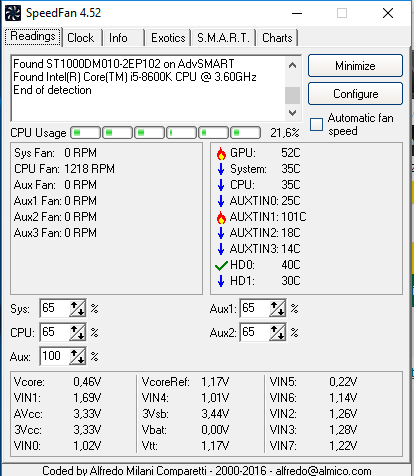 Zdravím, před chvílí jsem dostavil novej PC. Chtěl jsem si změřit všechny teploty jestli je vše ok, a zarazila mě hodnota AUXTIN1. Udělal jsem něco špatně? Nebo to může být jenom špatnej senzor? Popřípadě co s tím mám dělat. Předem díky za odpovědi.