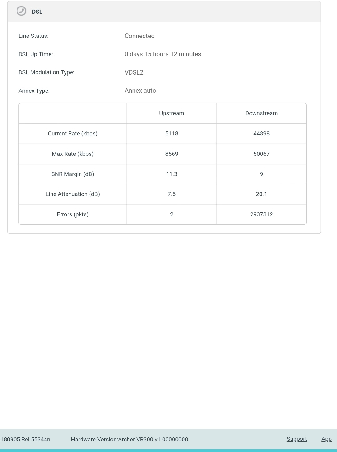 2016-01-01 01:00:55 [5] System: DSL Link Up us/ds 5118/43943 kbps Type 64/65B PTM Annex B
