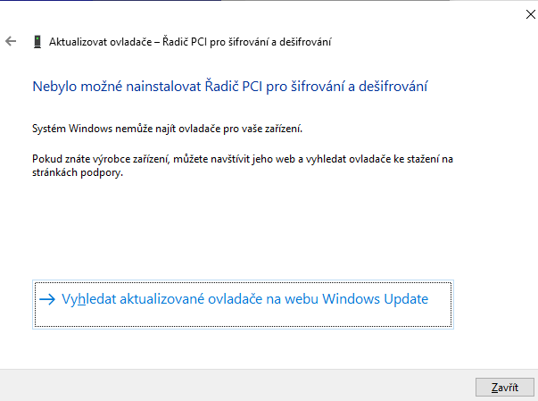 Když zkusím u každé ty věci aktualizovat ovladač a kliknu "Vyhledat automaticky aktualizovaný software ovladače." tak mi to