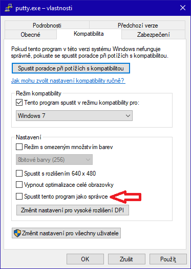 Režim kompatibility to neřeší a spustit jako správce zase chce heslo, takže bych ho musel poskytnout ostatním uživatelům.