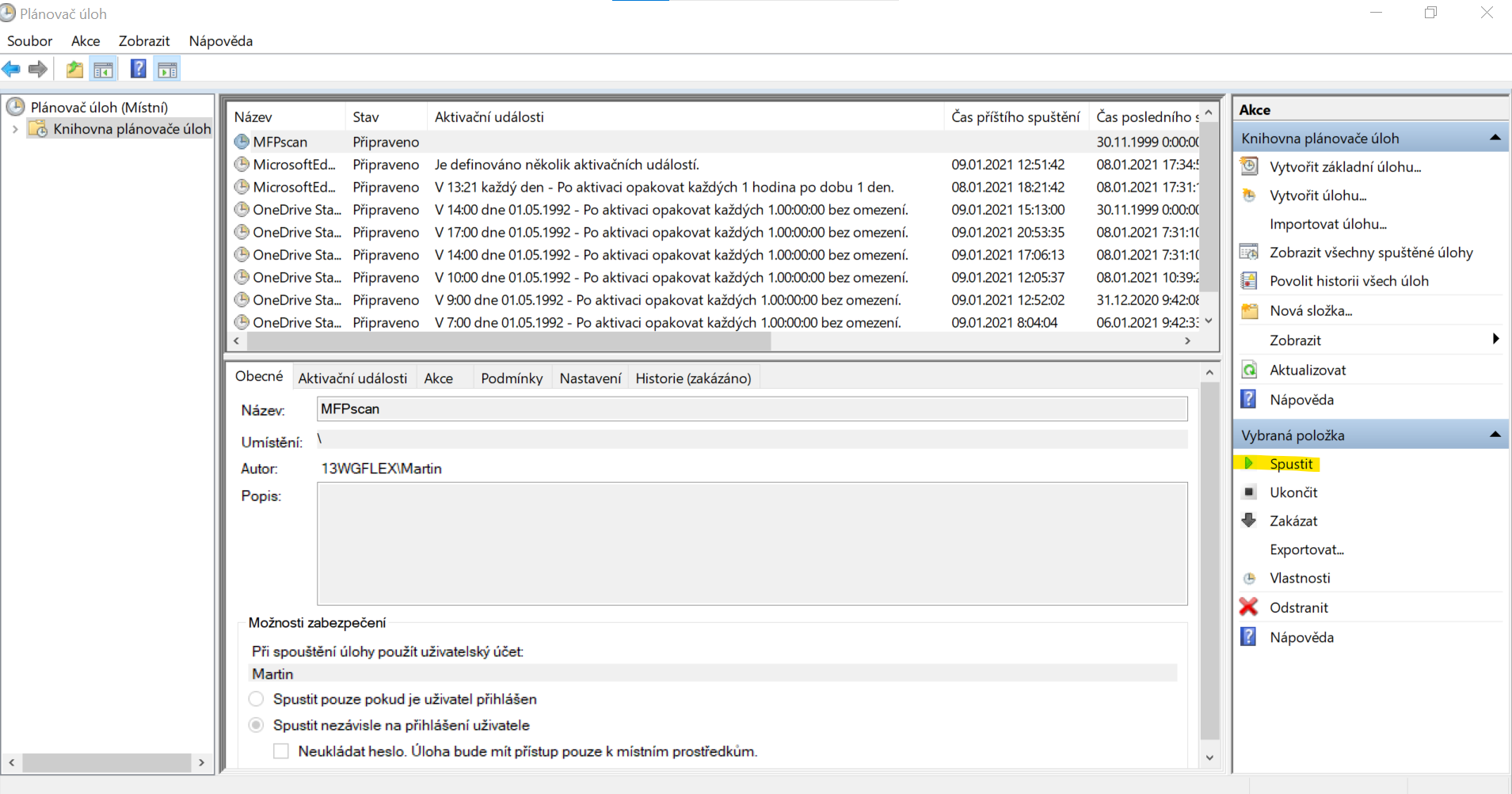 Teď to zkouším přes plánovač úloh, ale nedaří se mi vytvořit funkční úlohu: