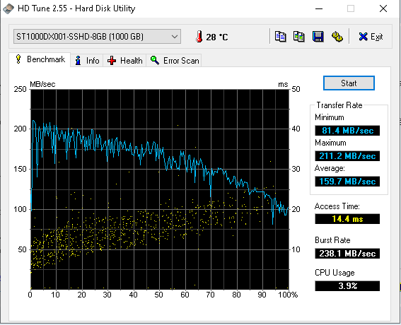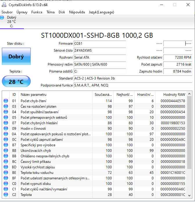 - zkontrolovat disk pomocí CrystalDiskInfo a HDTune
