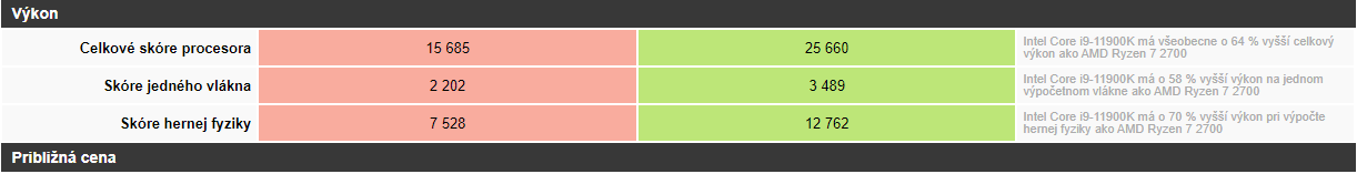 A co s tím má společného můj PC? Toto jsem nějak nepochopil, nikde ani netvrdím, že ho mám výkonnější, nevím proč to srovnáváš. Ta i9 11900K má výkon na úrovni Ryzen 5800X s tím, že se dá za její cenu sehnat snad i Ryzen 5900X, který navíc nemá ani takovou spotřebu a je výkonnější. Případně je tu ještě i5 12600K nebo dražší i7 12700K, všechno to jsou výkonnější a lepší procesory než i9 11900K.drago94 píše:Nevím, nevím. Jestli je tvoje výbava PC v popisku, tak mám o dost výkonnější PC: i9 11900K je o 64% výkonnější, než tvůj Ryzen, o graf. kartě není pochyb.Michael850 píše:Jestli to je tato hrůza https://www.atcmarket.cz/detail/Legion- ... =#tab-desc a je to koupeno přes eschop, tak bych jim to rychle vrátil bez udání důvodu dokud je čas a jsi v té "zkušební" lhůtě, protože se dá určitě vybrat lépe. Při výběru asi nebyla příliš šťastná ruka a vybral sis sestavu se snad tím nejhorším procesorem, co se v této cenové třídě dá vůbec sehnat - akorát nechutně předražený, za tu cenu poněkud slabý a na ten výkon především extrémně topící. Pokud je na tom nějaký malý chladič, tak se obávám, že takové teploty jsou bohužel skutečně "normální" na takový procesor, navíc hraním her to nejspíš ani moc nezatížíš a ještě to ani netopí tak moc jak to jinak dokáže a je to pak ještě horší.