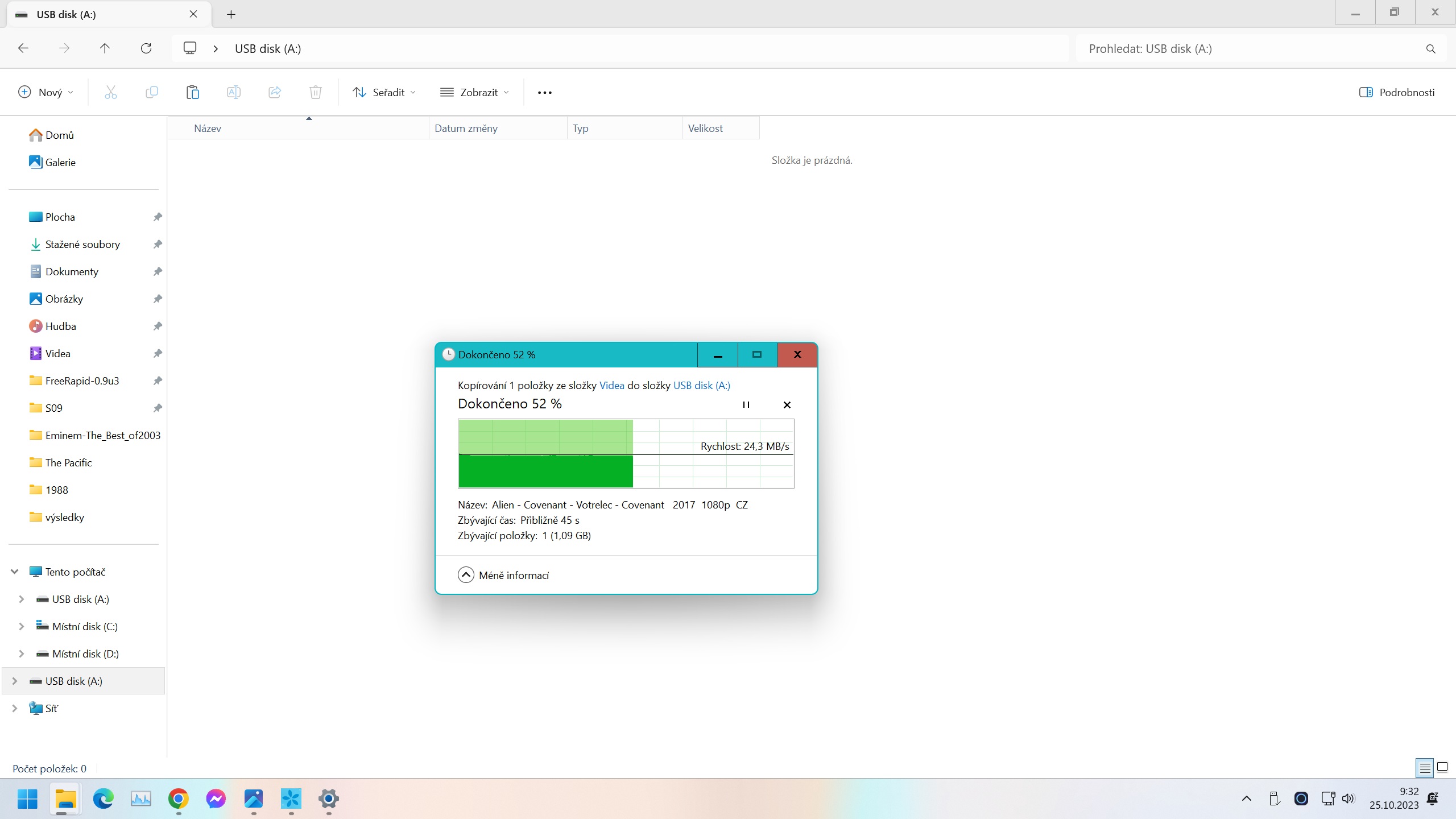 Výsledek stejný 24MB/s s dobou kopírování cc 1min 40s