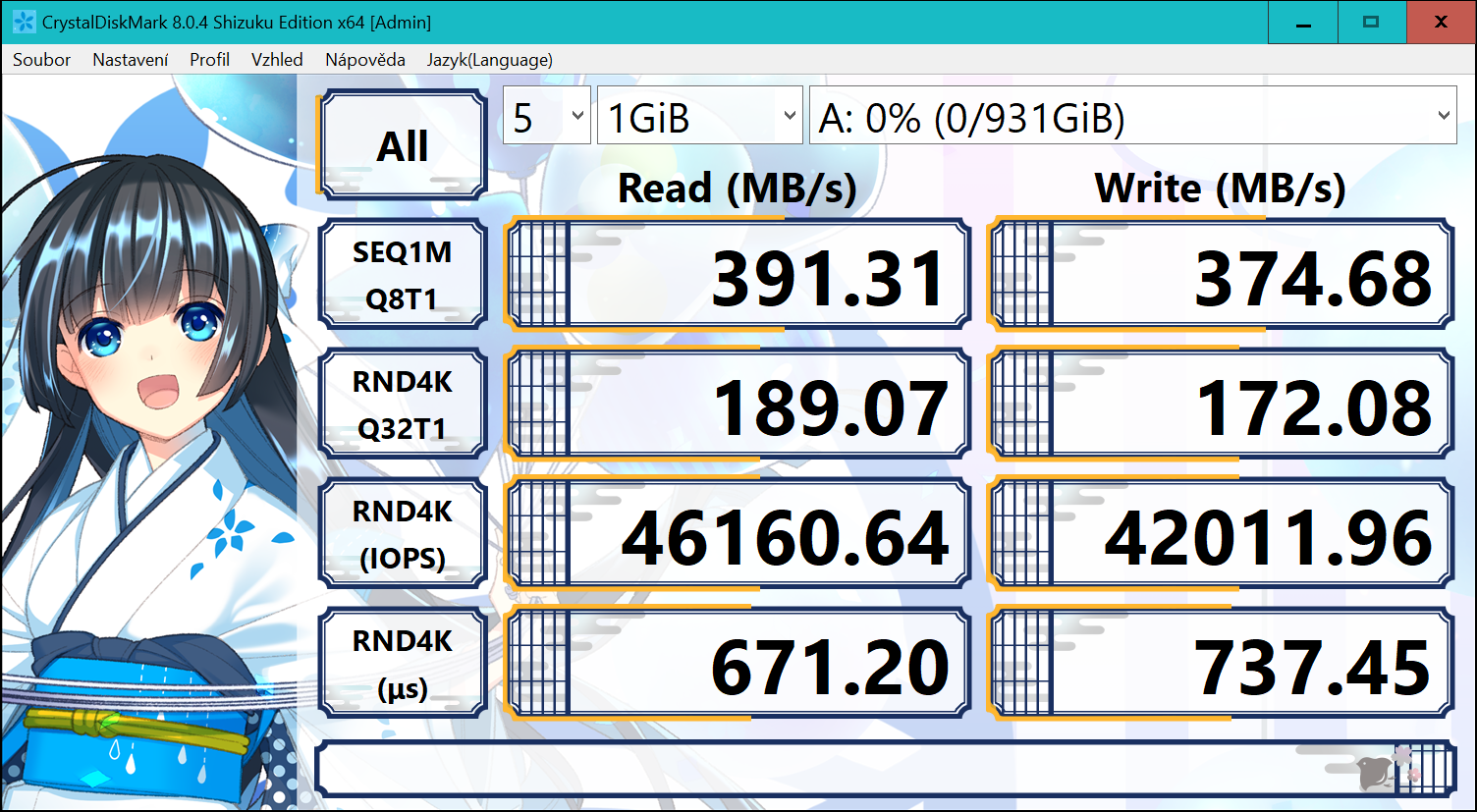 Ale rychlost čtení/zápis jen 43/34 Mb/s.