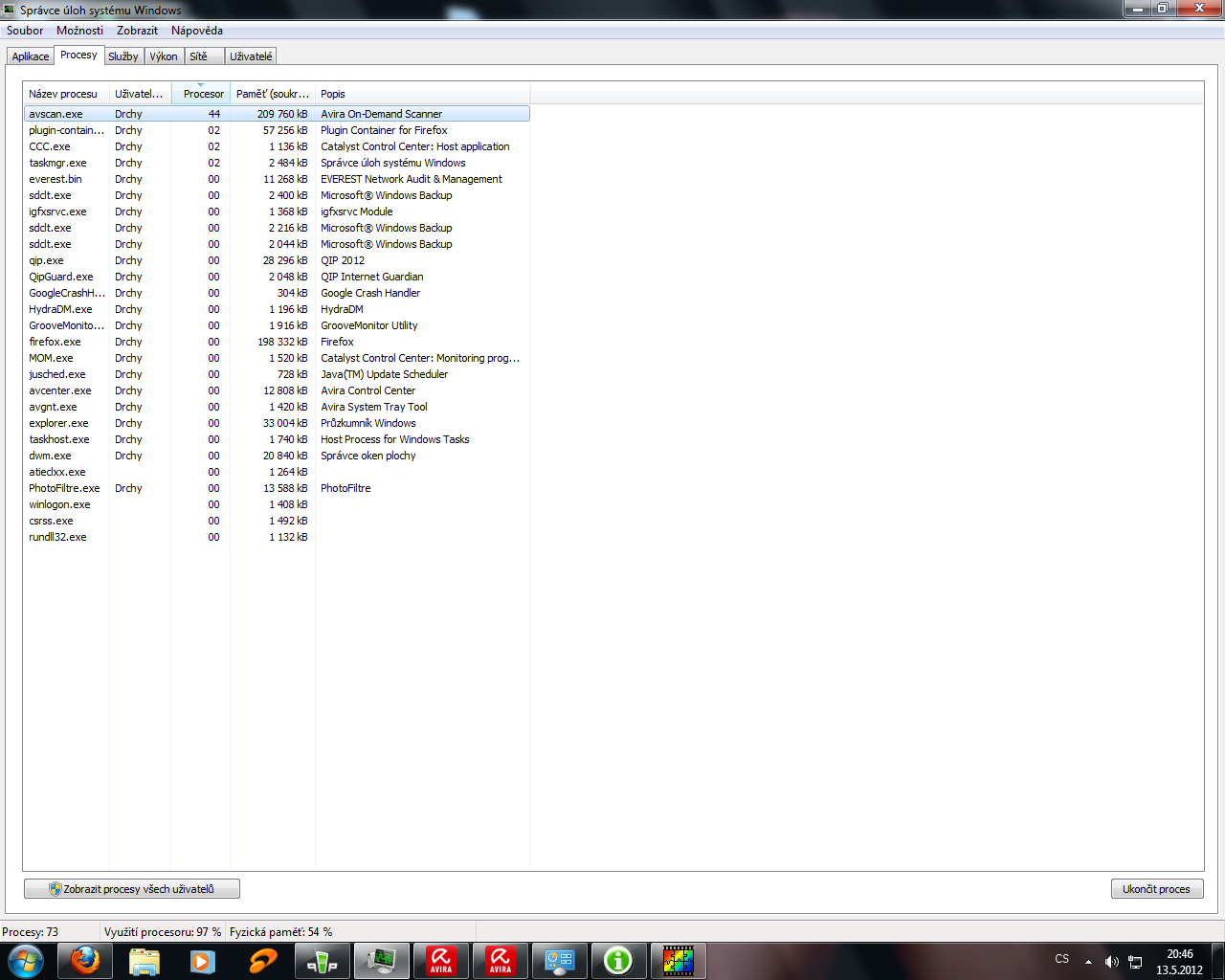 Tohle bere 44%, využití je na 97%, dej "Zobrazit procesy všech uživatelů" a tu kontrolu zruš, a dej log do sekce HiJackThis.