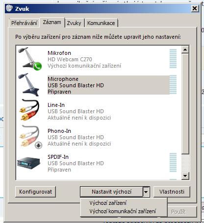 Je tak pro jistotu: mikrofon máš nastavený jako výchozí komunikační zařízení?