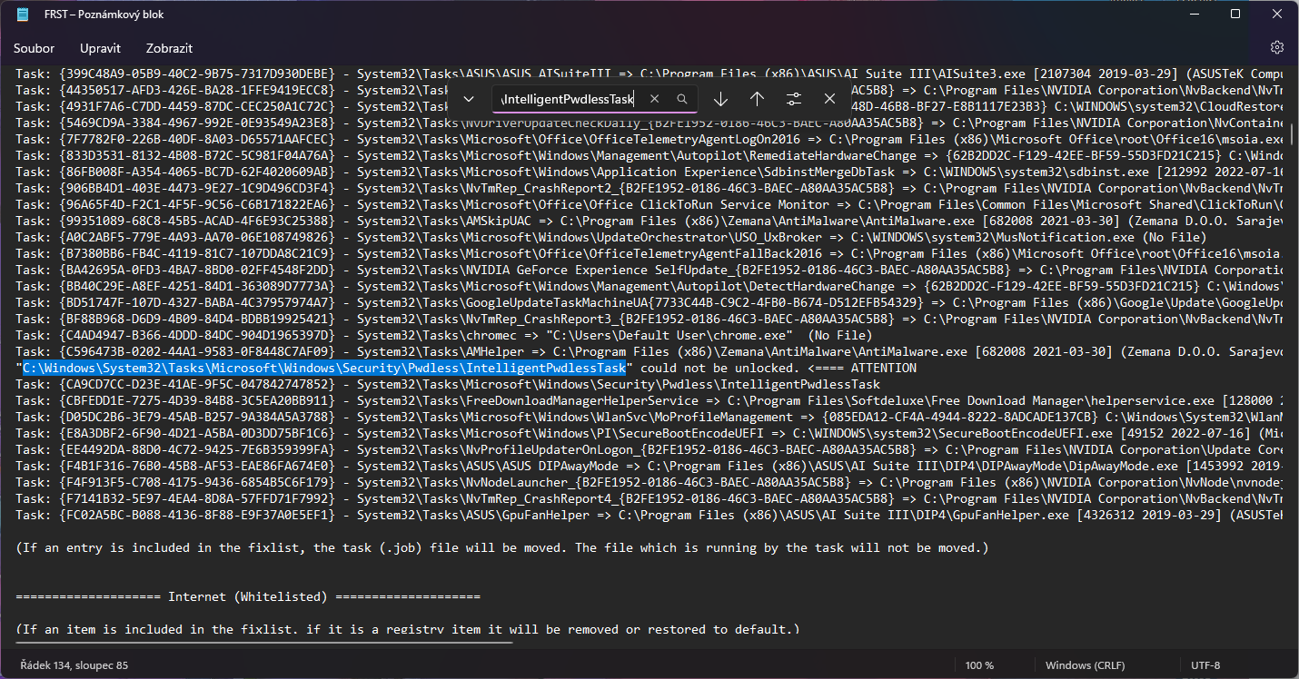 "C:\Windows\System32\Tasks\Microsoft\Windows\Security\Pwdless\IntelligentPwdlessTask" could not be unlocked. <==== ATTENTION" => not found