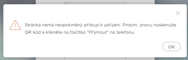 Z nějakého důvodu se mi nedaří navázat komunikaci mezi mobilem a PC v aplikaci AirMore - nejde mi načíst QR kód a hlásí mi to viz obrázek. Nevím co to znamená - umíte mi poradit?