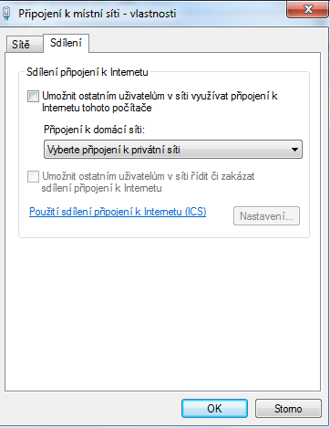 jediné co je trochu jinak je připojení k místní síti , vlastnosti , sdílení , viz foto: