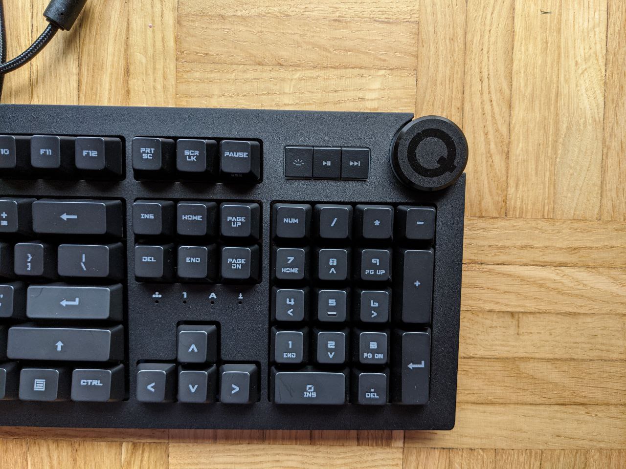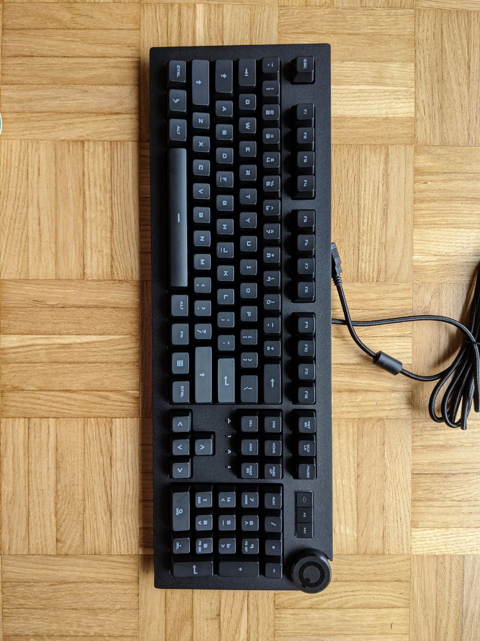 prodam herni RGB mechanickou klavesnici Das Keyboard 5QS s otocnym ovladacem. Klavesnice je nova, nikdy nepouzita/nezapojena do PC, pouze rozbalena. Rozlozeni klaves dle standardu ANSI (dlouhy levy Shift, jednoradkovy Enter), popisky klaves US, spinace Gamma Zulu – velmi lehke taktilni (45 cN), vyrobce Omron, s zivotnosti 100000 cyklu (dvojnasobne delsi zivotnost oproti beznym Cherry MX). Soucasti baleni je odnimatelna podlozka pod dlane.