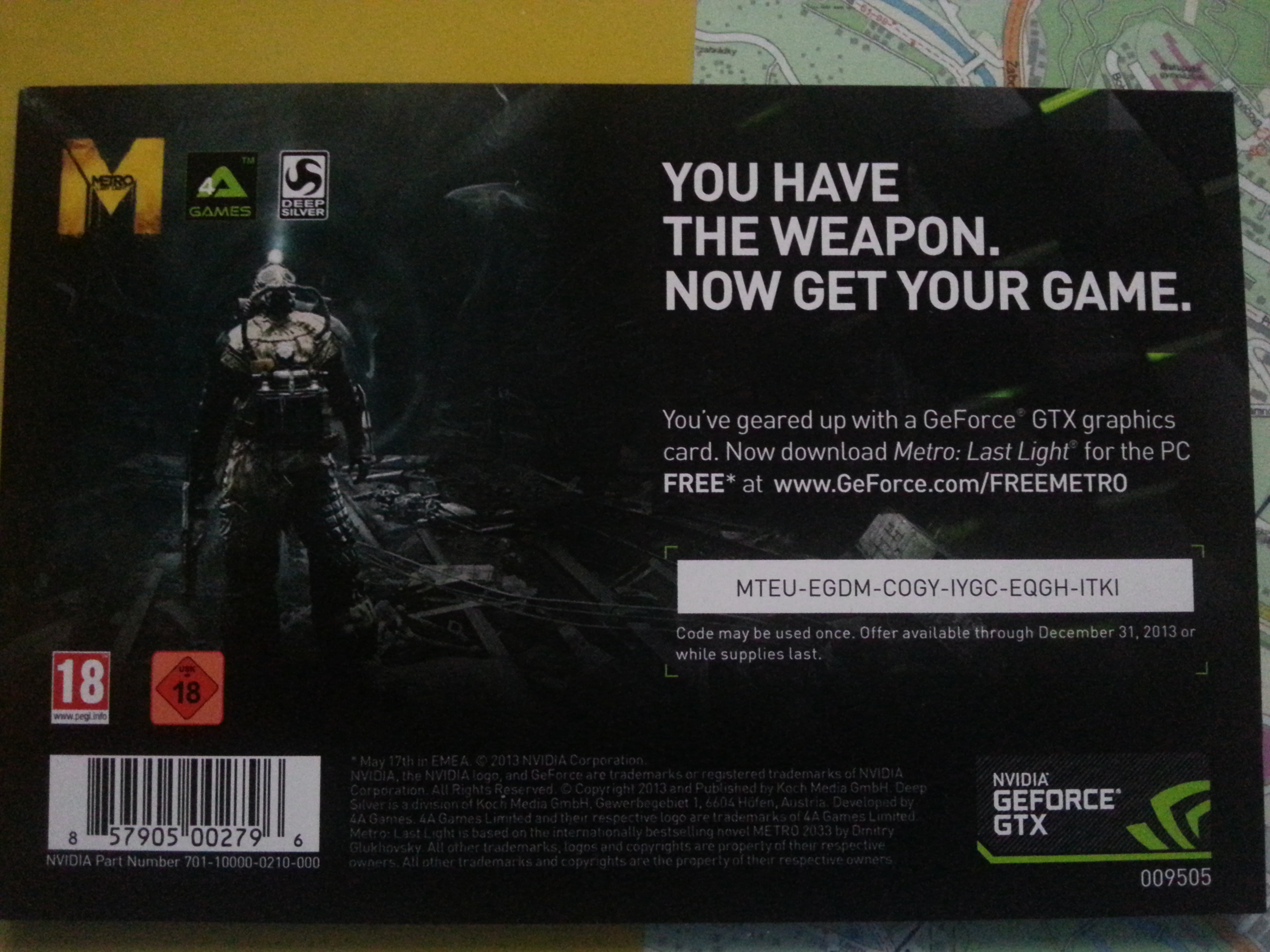 Dále pak mám kupon i ke hře METRO: LAST LIGHT, jenže kód není překrytý stírací vrstvou, tudíž si nejsem jistý jestli již nebyl použit :/ Někde jsem se dočetl, že to někomu nefungovalo, protože byl již kód použit a někomu zase kupon fungoval. Máte někdo podobné zkušenosti? Pokud mi dali použitý kupon, beru to jako drzost. Stejně bych ho ale nevyužil :) Nakupoval jsem v CZC.