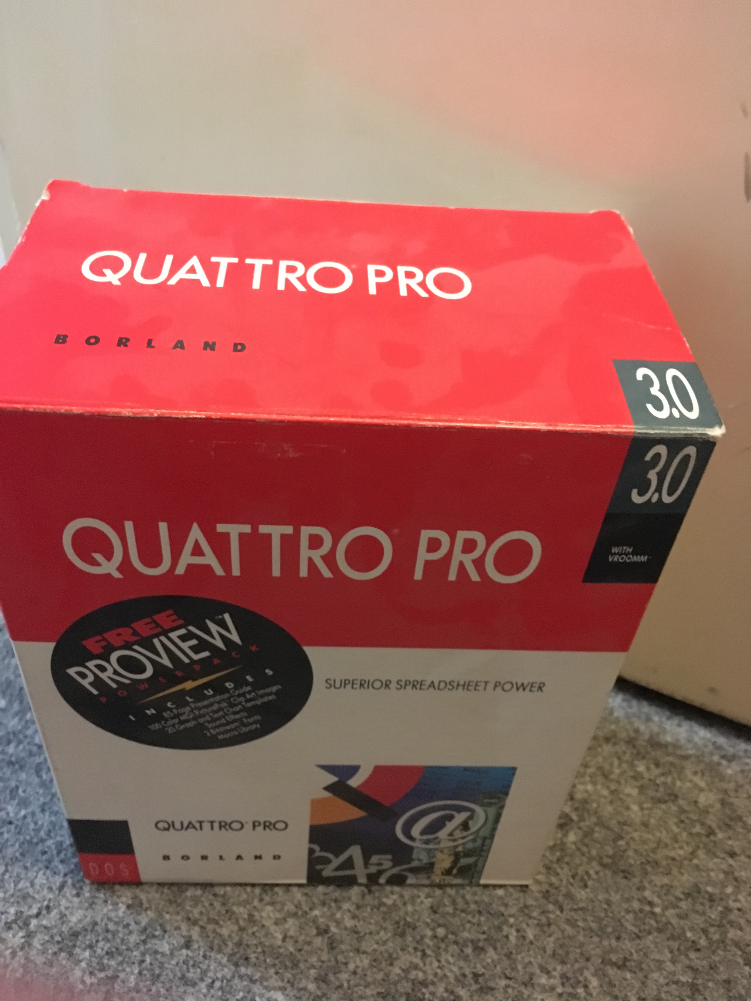 Našel jsem na půdě krabici se starým kancelářským programem Quattro 3.0, kompletní balení se všemi šesti disketami+ nějaké letáčky atd.. +nějaké knížky o programu..