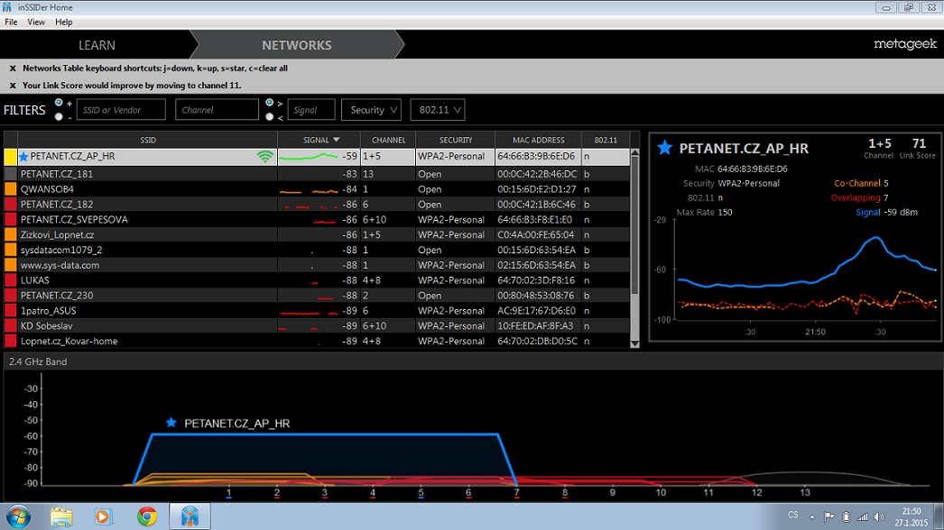 Je tedy problém v tom, že se další dvě okolní wifi s celkem silným signálem kryjí s tou mojí?