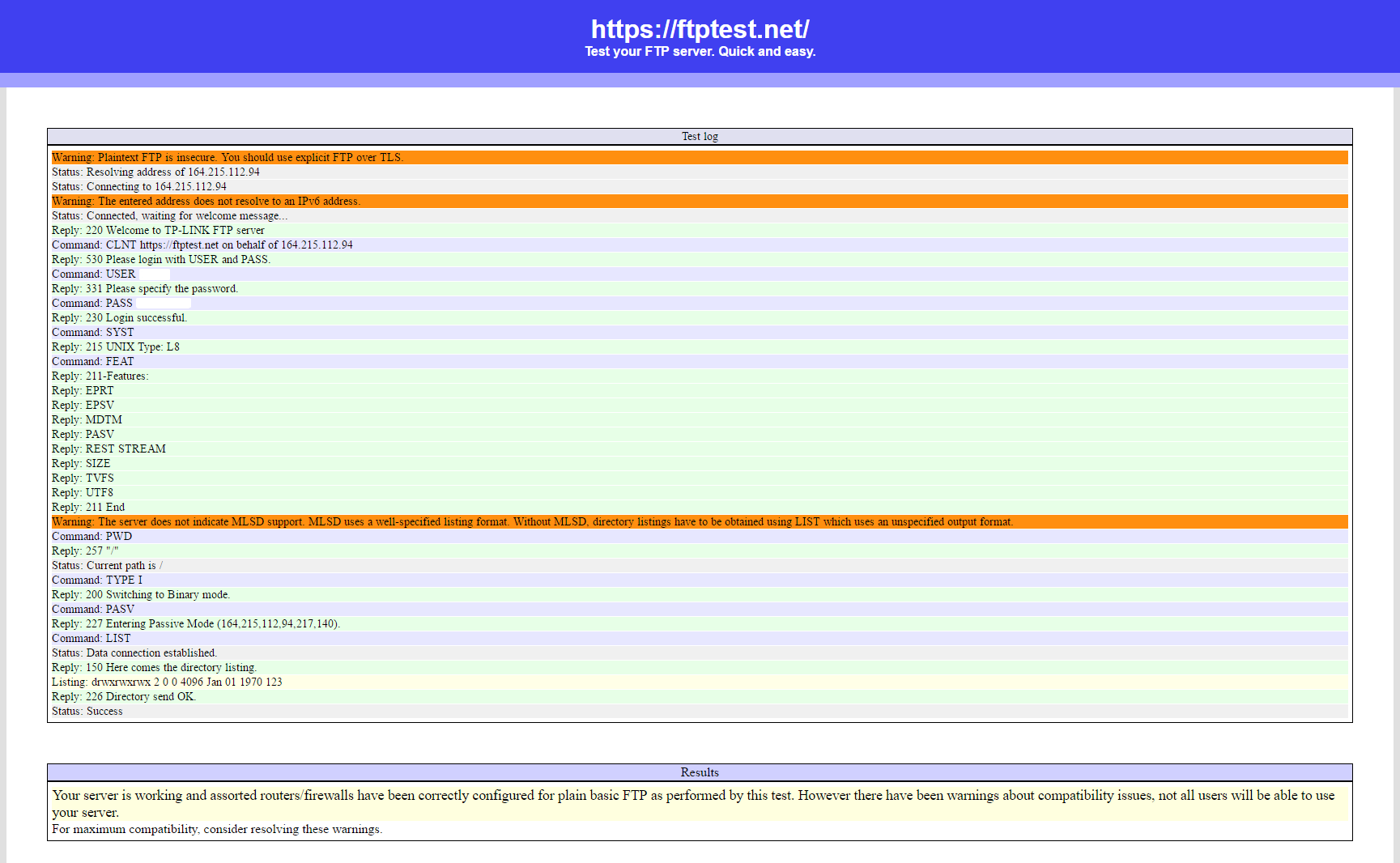 Psal jsem na podporu TPlinku, zkoušeli se na moje ftp připojit, a připojili se (věřím že i jiní se bez problému připojí). Problém je někde na mojí straně. Zase přikládám obrázek: