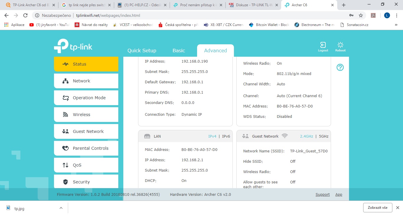• TP Link Archer C6 v2 problém výpadky