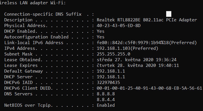 Notebooku jsem nastavil statickou IP adresu v nastavení routeru - TP Link Archer MR200, v routeru jedu přes Google DNS a v nastavení notebooku je vše správně, jak IP adresa, tak DNS. Na stolním PC, které je připojené kabelem žádné výpadky nejsou, stejně tak na ostatních zařízeních připojených přes wi-fi.