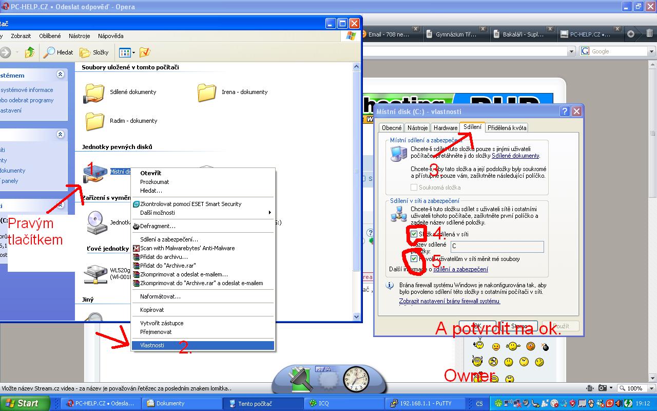 jj přesně tohle všechno na obou počítačích mám... a prostě jedním se připojim ke druhemu ale naopak to nejde