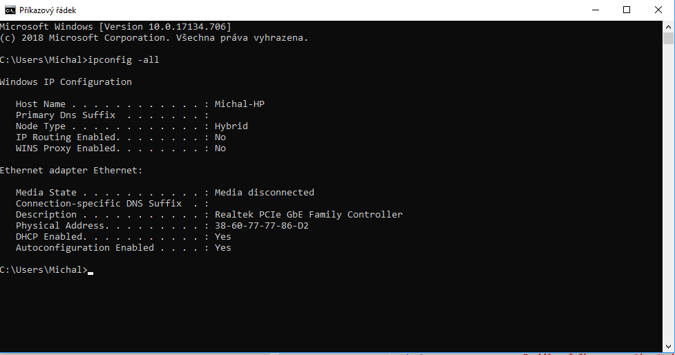 Dej sem ipconfig -all bez připojeného modemu, jen s tím routerem.