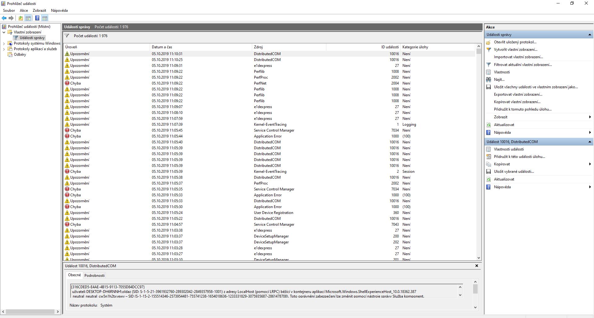a vsechno stahuji pres druhy pc protoze bych to tady delal 2 dny :D stim internetem ale ted mam podezreni ze tam je neco hodne spatne protoze v prohlizeci udalosti je za dnesek a to ze to mam zaple chvili hodne chyb ale moc to nepouzivam takze se v tom moc nevyznam kdyz dam ty id udalosti podle cisla vyhledat na netu tak jsou to trochu matouci informace asi sem debil protze jinak uz fakt nevim dam vam se par priloh treba neco najdeme