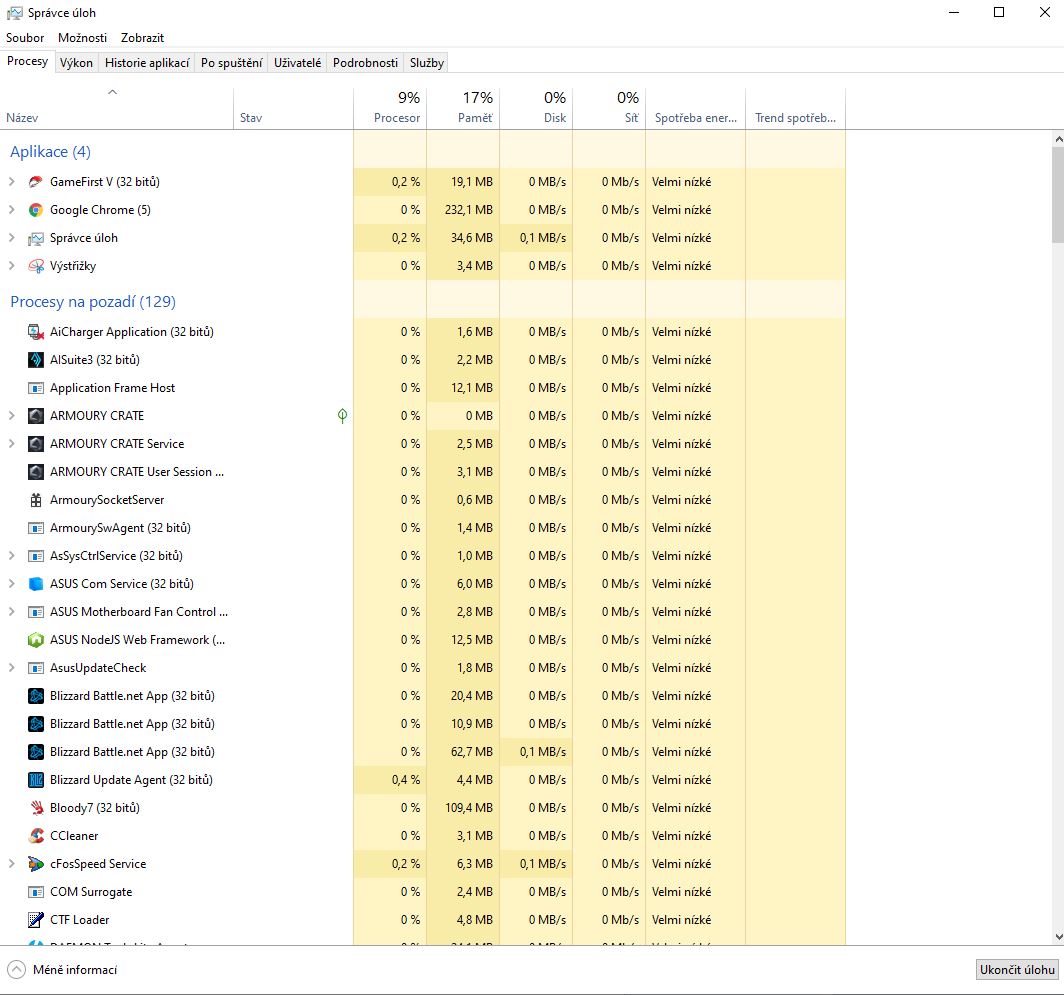 bezi ty rezidentne zbytecne moc aplikaci, vlez zase do spravce zarizeni, prepni se po startu a 90% veci povypinej. treba ccleaner ani battlenet nemusi vubec bezet