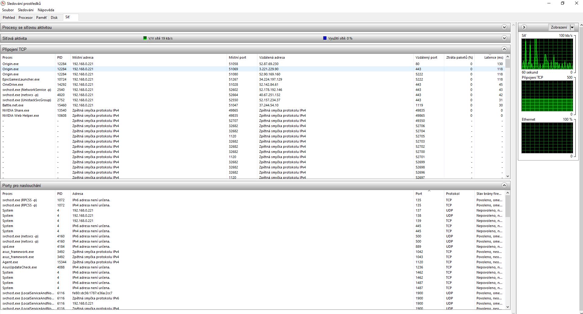 dej si task manager - ctrl alt del - a podivej se, co vytezuje sit