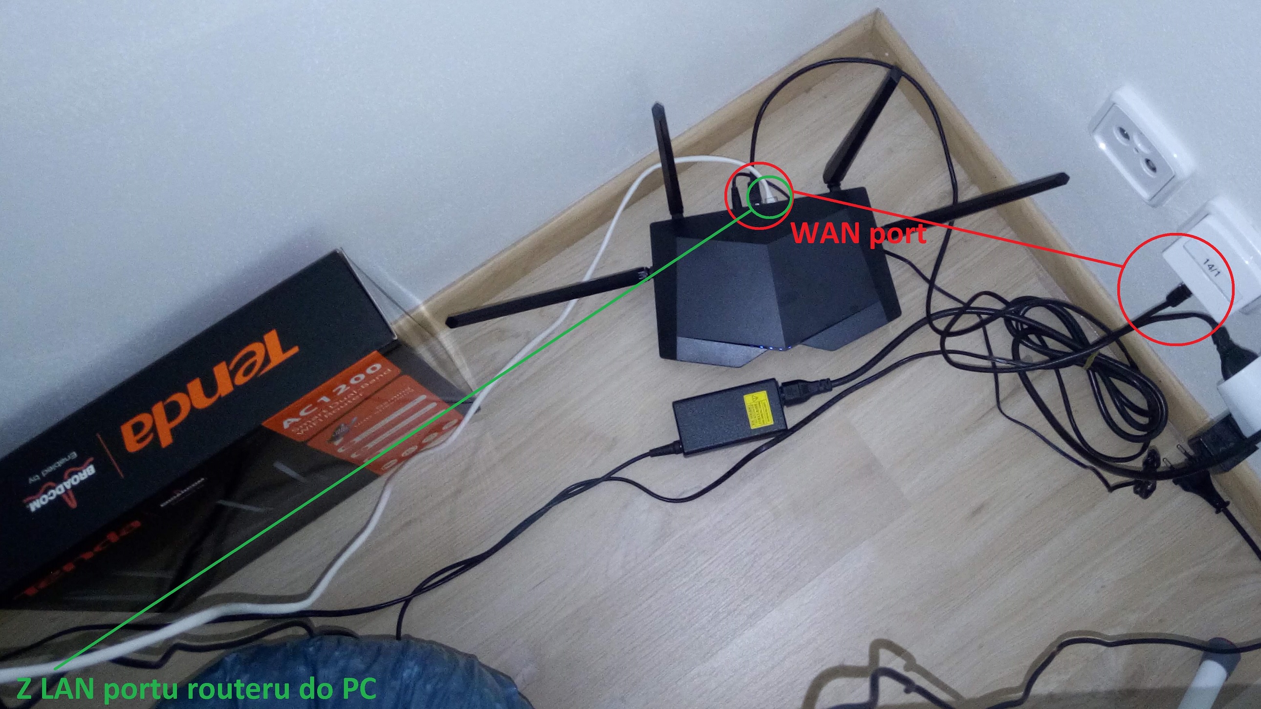 Pořídil jsem wifi router, abych měl wi-fi přímo v bytě, což v pohodě taky funguje (ze zmíněného modemu providera v přízemí k nám wi-fi signál nedostačuje). Síť. kabel jde tedy ze zásuvky přímo do routeru.