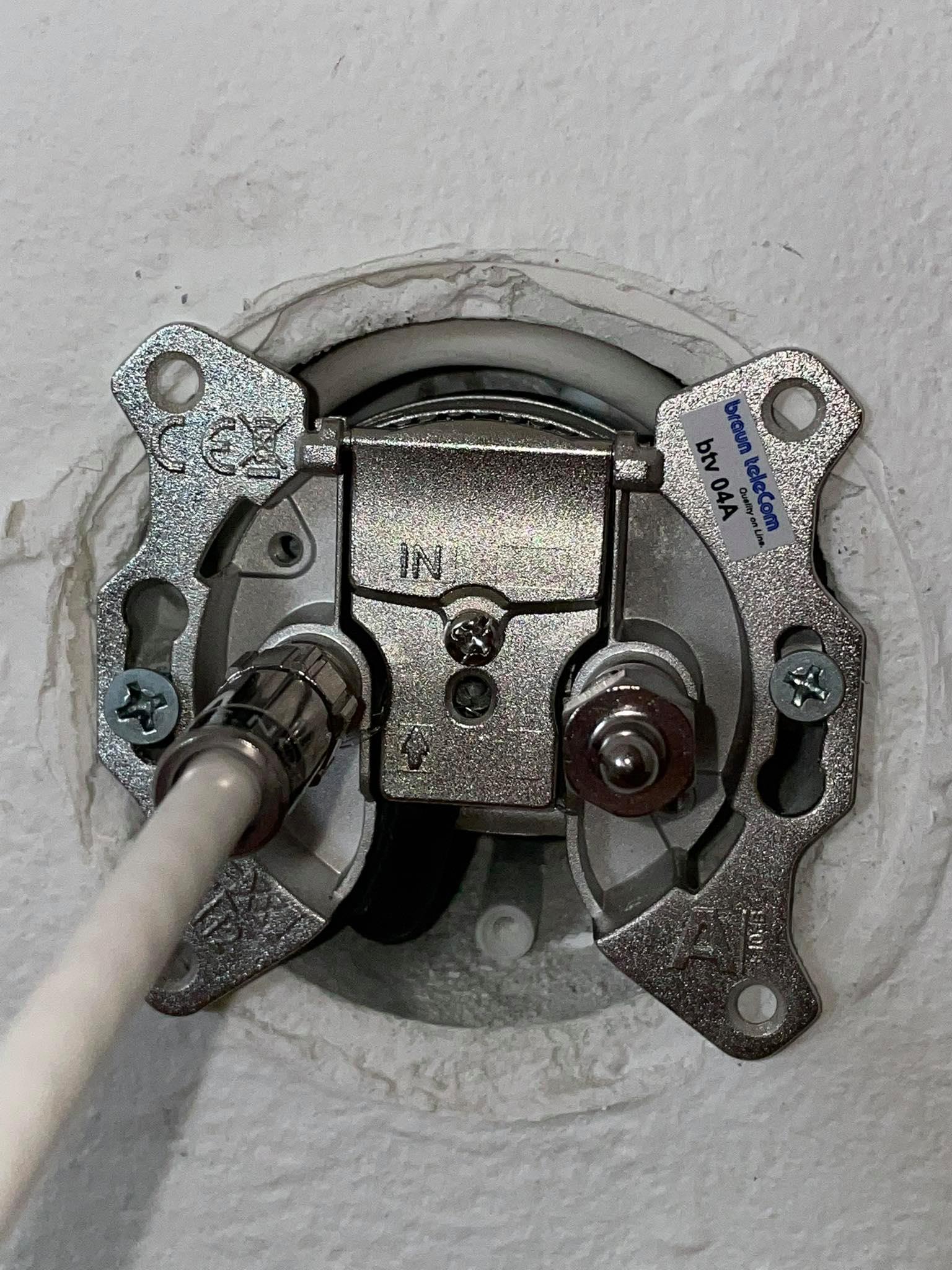 Pokud vyměním zásuvku (obrázek č. 1 a 2) za novou zásuvku, která má výstup i pro TV anténu (obrázek č.3) se shodným zapojením, jako byla výchozí zásuvka, tj. koaxiál ze zdi zapojím do IN šipky a dotáhnu pořádně patřičné šrouby (obrázek č.3), na modemu COMPAL CH7465 začne zeleně blikat ikona internetu a síť není pro desktop PC dostupná (ačkoliv televize programy chytne z antény). Z mobilu se mi povedlo připojit do nastavení modemu a u položky internet, je status: DS scanning.
