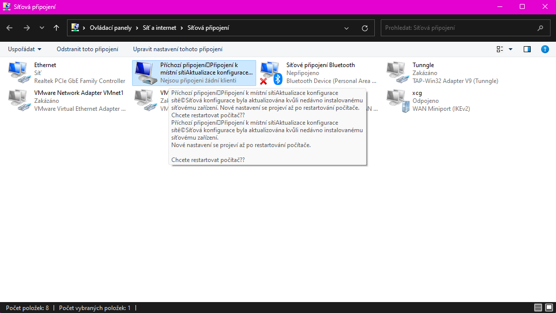 To ti nepise system, ze je treba restartovat, ono se tak jmenuje to pripojeni!