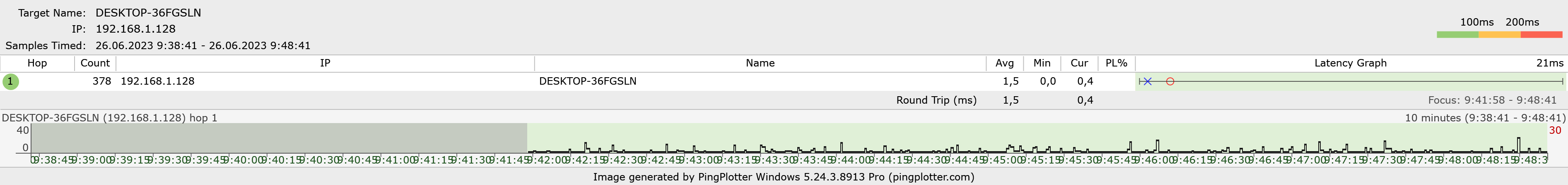 3. spustis napriklad PingPlotter proti webu Google, ten by mohl ukazat kde presne dojde k preruseni komunikace