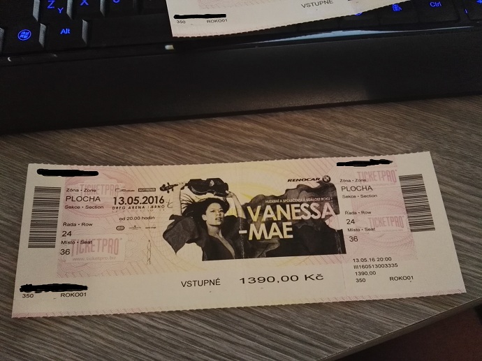 Mám na prodej jeden lístek na koncert Vanessy Mae, který se koná 13.5.2016 v Brně. Jedná se o lístek na plochu řada 24 a sedadlo 36. V prodeji označován za VIP.
