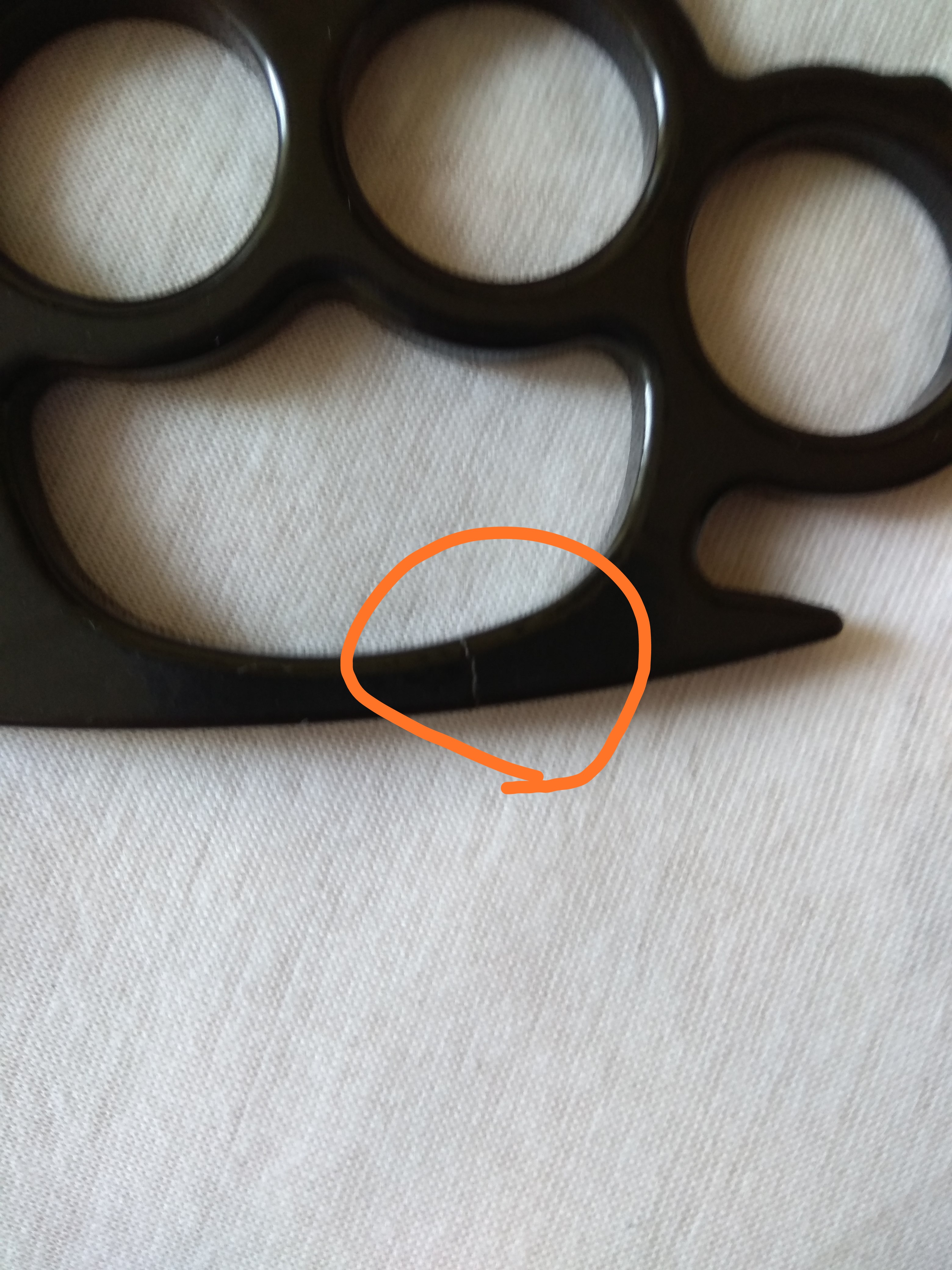 Osobně bych takovouhle "vadu", která nemá vliv na funkcni, což je mlácení do lidí, vůbec neřešil. Když to budeš pár let nosit v kapse, odrbeš povrch tak, že z té barvy nezůstane nic. A z hran a výstupků dost málo, už od pohledu to není moc extra materiál..