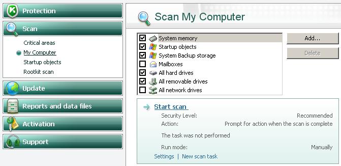 Na dalším obrázku vidíme jak si nastavit sken u KAV/KIS7.