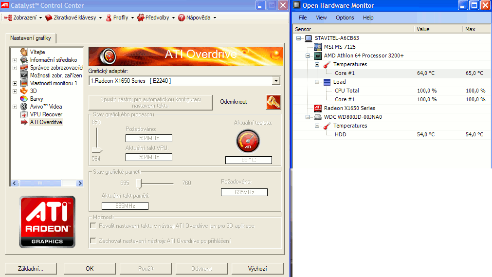 89°C na čem? Můžeš stáhnout HW monitor z mého podpisu a dát sem screen? Viděli bychom všechna čidla.