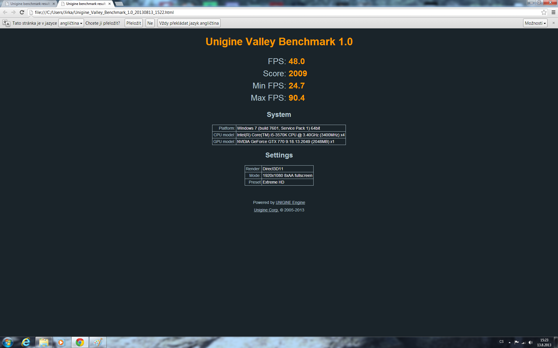 Re: Změřte výkon s ostatními v Unigine Valley 1.0