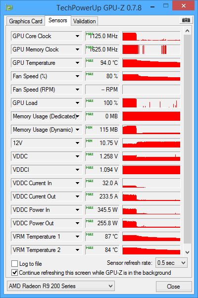 Grafika sráží 500W 80+ Gold zdroj na kolena, 12V větev klesla až na 10,75V. Spotřeba až 350W.
