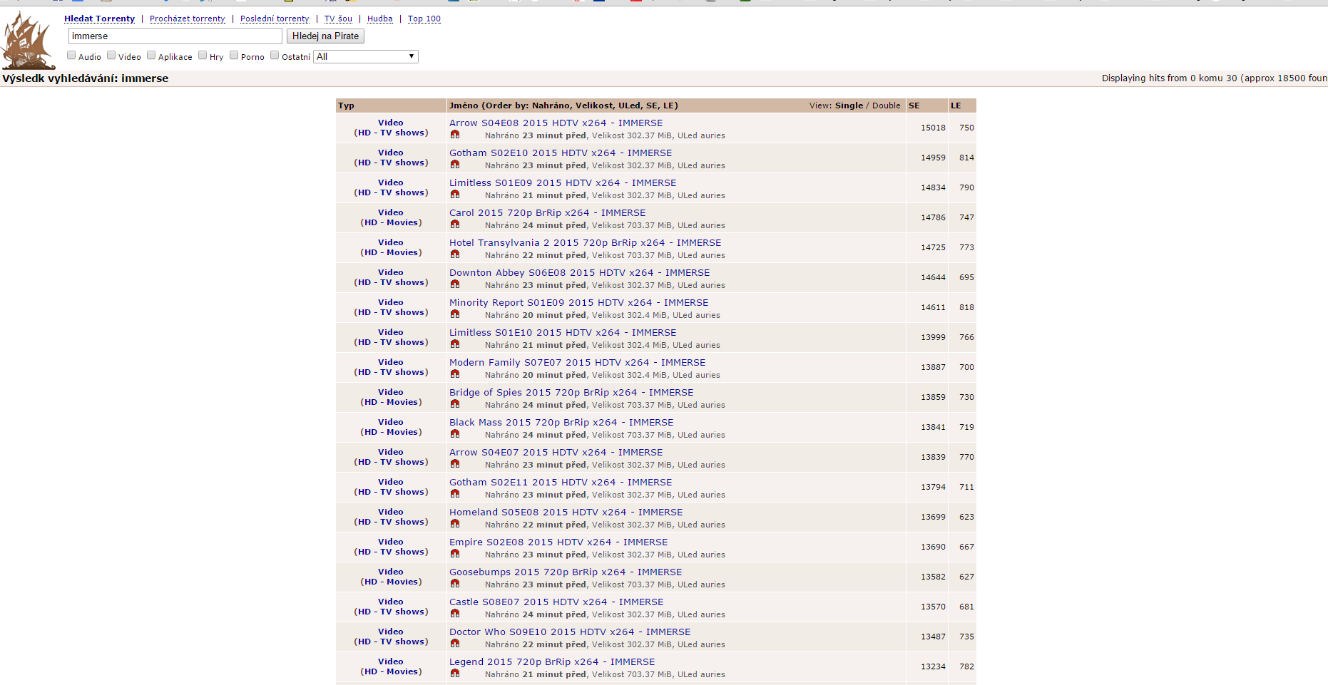 Dejte si pozor na stranku piratebay. Objevuje se zde agresivni malware. Nestahovat torrenty od uzivatele: auries