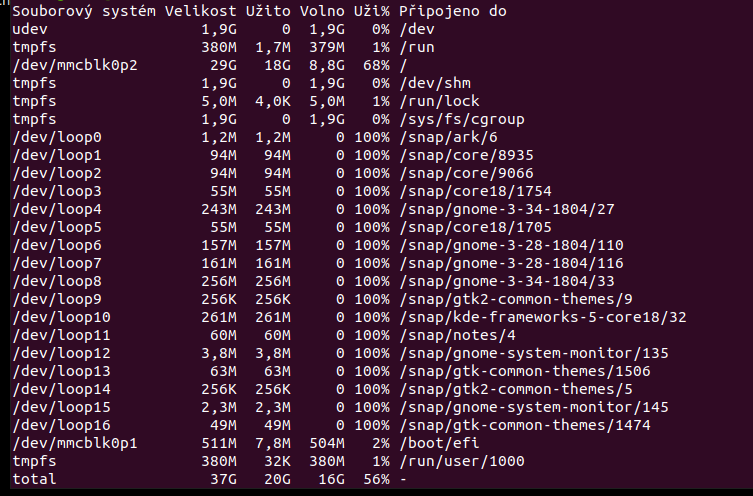 program disky ukazuje jak 537MB volnych tak 11GB a prikaz lsblk, z toho jsem uplne na vetvi, tak na co se soustredit?
