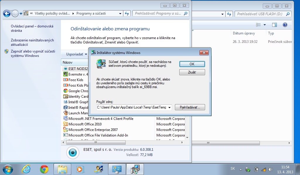 Keď chcem odinštalovať program Eset Nod 32 Antivirus 6, tak mi vyskočí táto tabuľka a neviem čo s tým mám robiť.