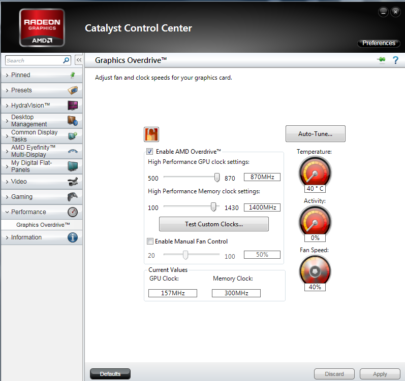 Jinak pokud by to bylo vysokou teplotou grafiky tak otáčky ventilátoru se dají nastavit přímo v Catalyst control center pod volbou Performance, když tam dáš 100% tak by ti to tu grafiku mělo trochu schladit a pokud to bude pořát padat tak je možné že je chlazení zanesené prachem nebo problém je někde jinde.