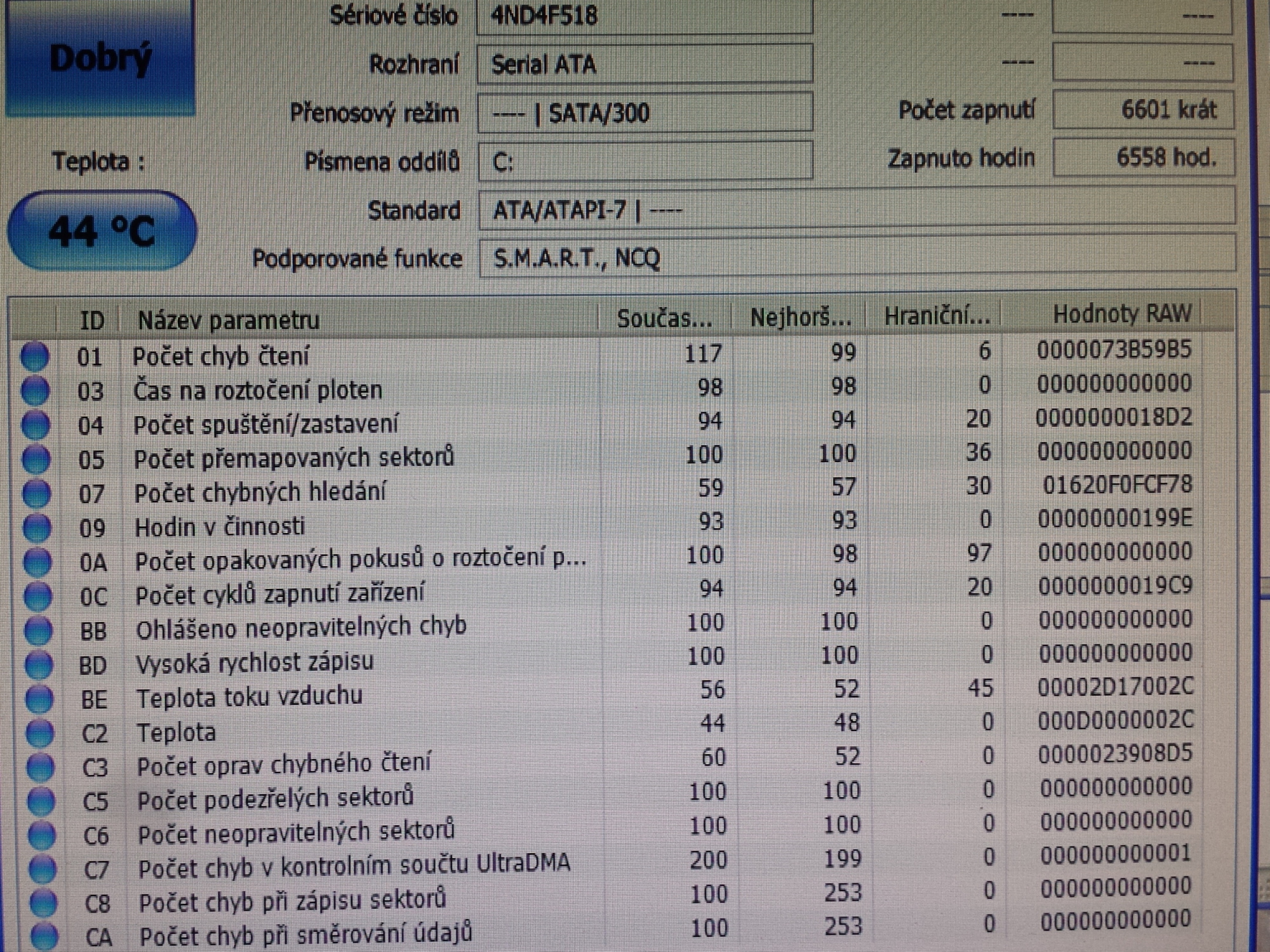Snímek z CDI o ničem nevypovídá, protože tam chybí typ HDD a snímek ukazuje jen část celého "SMARTu".