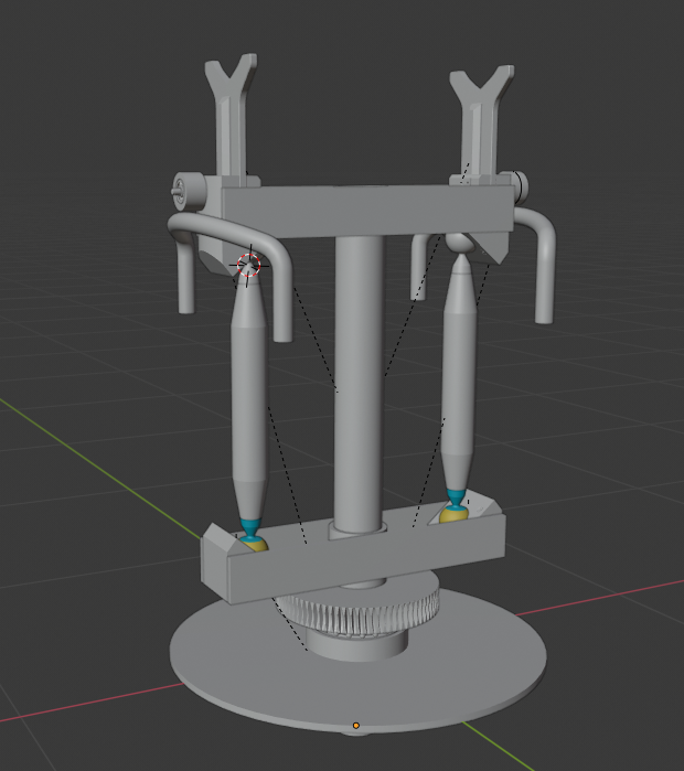 Jde o to aby ty kladky ( kolečka ) jezdily po té kolejnici. Je to tím, že se začne otáčet spodek, který silami začne otáčet vrškem a při tom se i díky těm vzpěrám může nazvednout,.. Takže v Blenderu chci provést toto. Nevím, jestli se nějak dá udělat, aby ty kolečka jezdili po zvolené trajektorii ( - která by byla po trati kolejnice ) nebo nějak dát pohyblivé klouby na klouby co jsou v té sestavě..